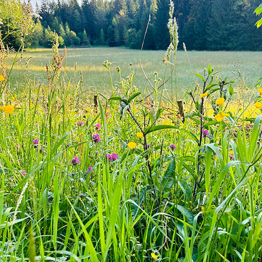 18 Hektar Hotelwald mit seinen teils fast 100 Jahre alten Tannen, Blühwiesen und Wanderwegen laden zu Spaziergängen und zum Verweilen ein.